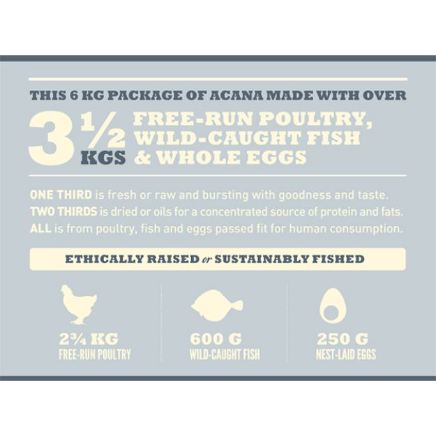 ACANA Adult Small Breed’in WholePrey™ oranlarında her gün TAZE olarak teslim edilen, fayda ve lezzet saçan serbest-dolaşan tavuk, serbest avlanan pisi balığı ve bütün kuluçka yumurtalarıyla dolu olmasının nedeni budur.